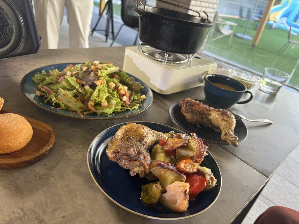 夕食では、スパイスに一晩漬け込んだ骨付鳥をダッチオーブンでじっくり焼き上げたホテル自慢の一品をいただけます♪