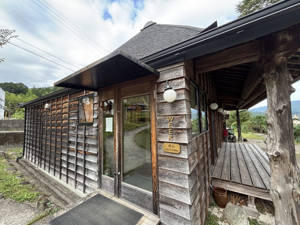 鮎喰川沿いに立つ素敵な木造の建物が、今回のお宿、WEEK神山さんです!