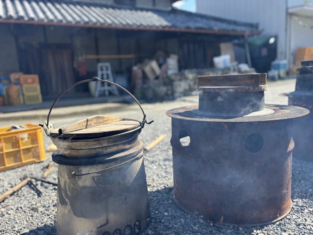 昭和暮らし体験と題して、屋外で薪をくべてご飯を炊いたりお味噌汁を作ったりもできます!