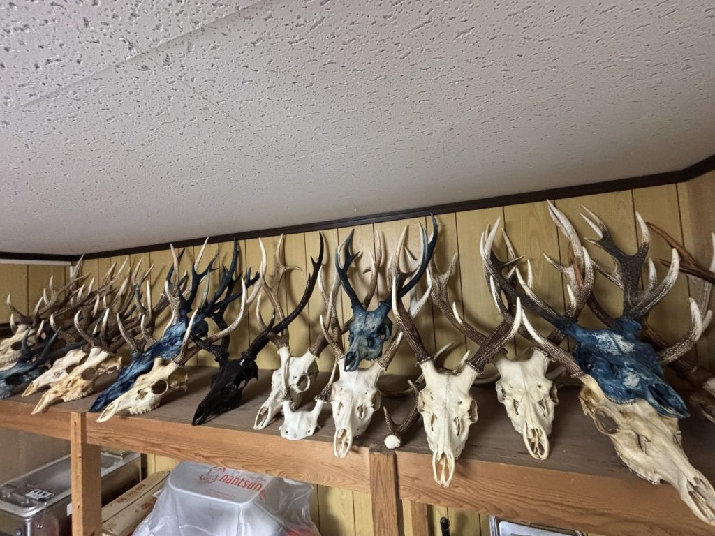 加工場には、加工されてきたシカの頭蓋骨と雄々しい角が飾られています!