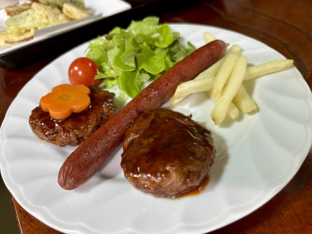 この2つのハンバーグ、鹿と猪それぞれのお肉で作られているんです〜♪どっちがどっちのお肉かは食べてみてのお楽しみ!(ちなみに井ノ上は2択をしっかり外しました…でもどっちも食べやすくて老若男女好きな間違いないお味!)