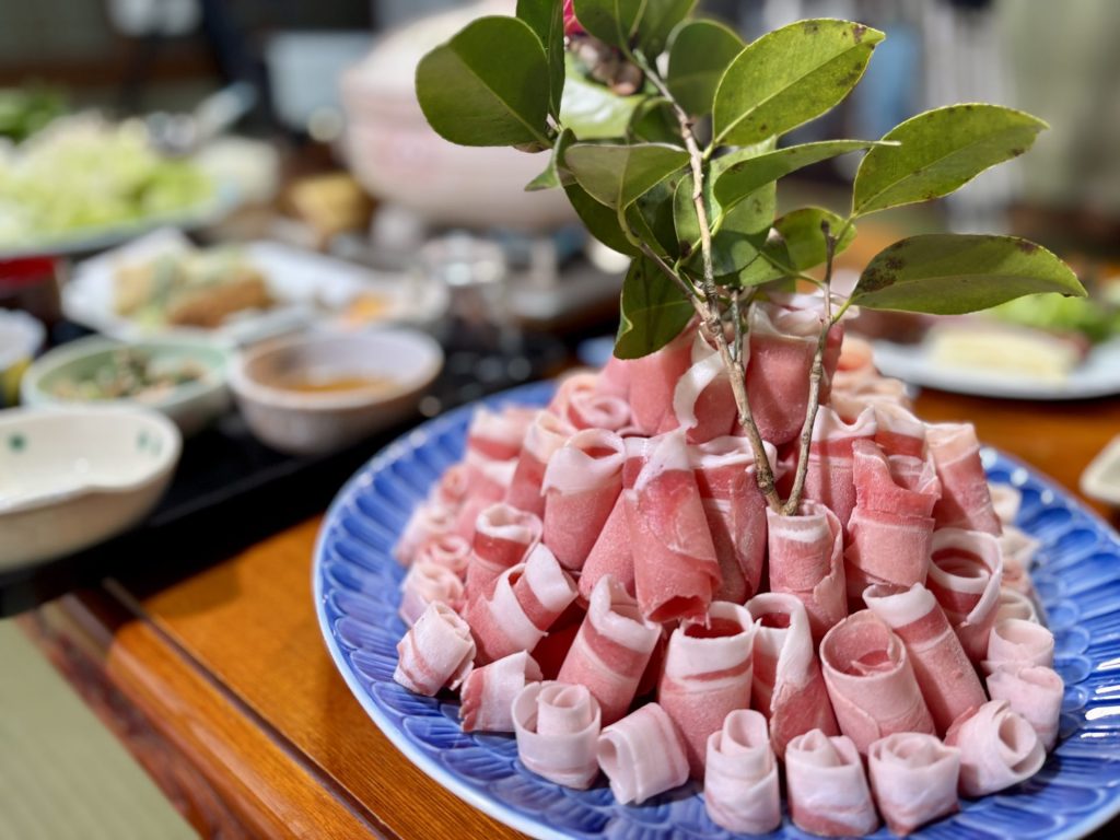 こちら、なんと猪肉のしゃぶしゃぶ!さすが牡丹と呼ばれるだけあって、ピンク色が鮮やかです〜♪